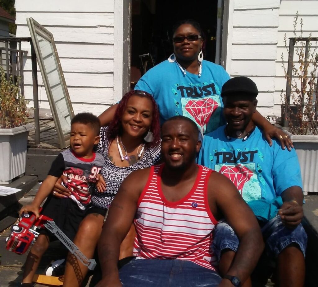 Dá Quain Johnson (red and white shirt) and family members from left, his son, his mother Angelica Johnson, and his grandparents.